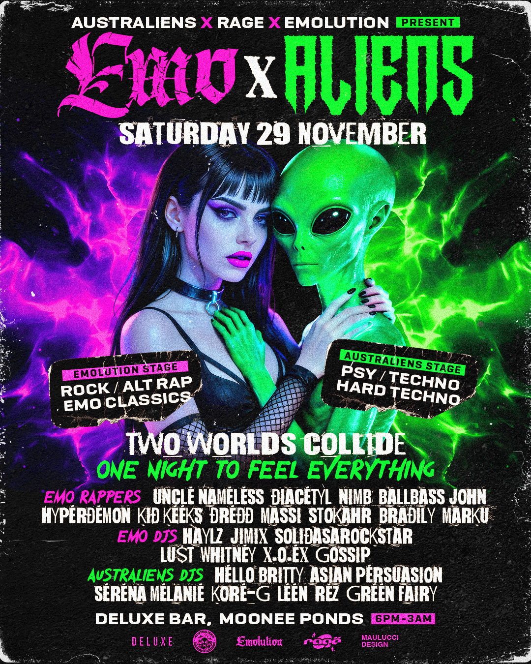 Aliens Collective is a private creative community curating immersive music gatherings across Victoria, indoors and outdoors.